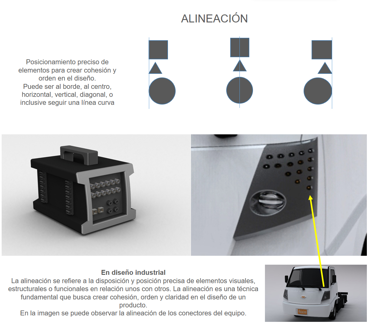 La falta de alineación puede dar una impresión de desorden, desorganización o falta de cuidado en el diseño, por lo que la alineación cuidadosa de los elementos es un aspecto crucial en el diseño industrial para lograr un producto visualmente atractivo y funcional.