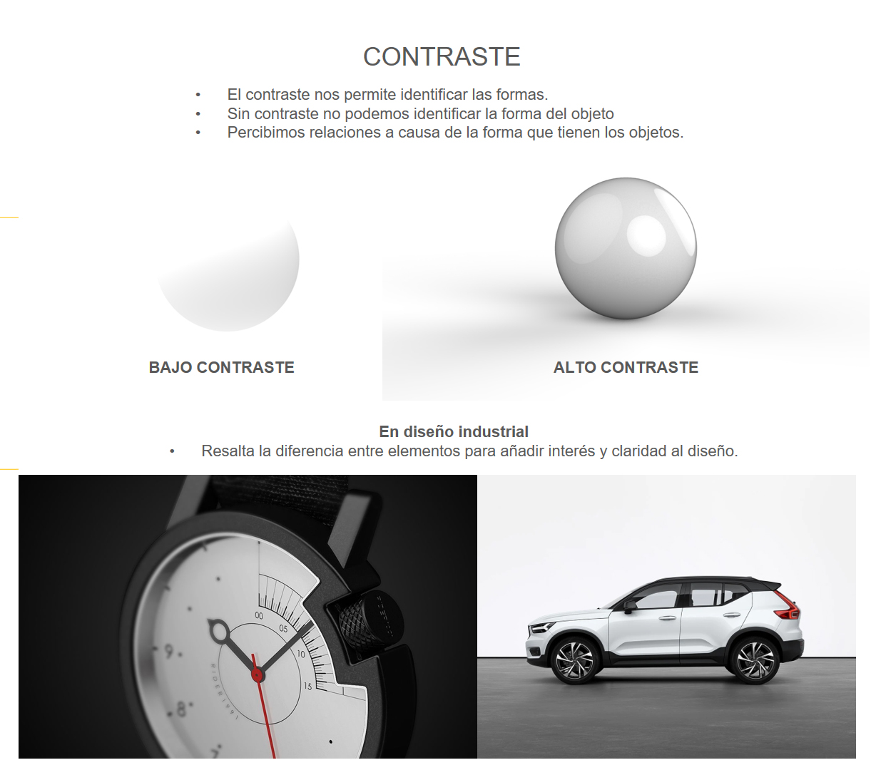 El contraste es un principio fundamental en el diseño industrial que se refiere a la diferencia notable entre elementos en un producto o diseño. Consiste en resaltar las disparidades visuales entre formas, colores, tamaños, texturas o cualquier otro atributo para generar interés, jerarquía y claridad en el diseño. El contraste puede utilizarse para llamar la atención sobre ciertos aspectos del producto, crear equilibrio visual, aumentar la legibilidad o destacar la importancia de ciertos elementos.