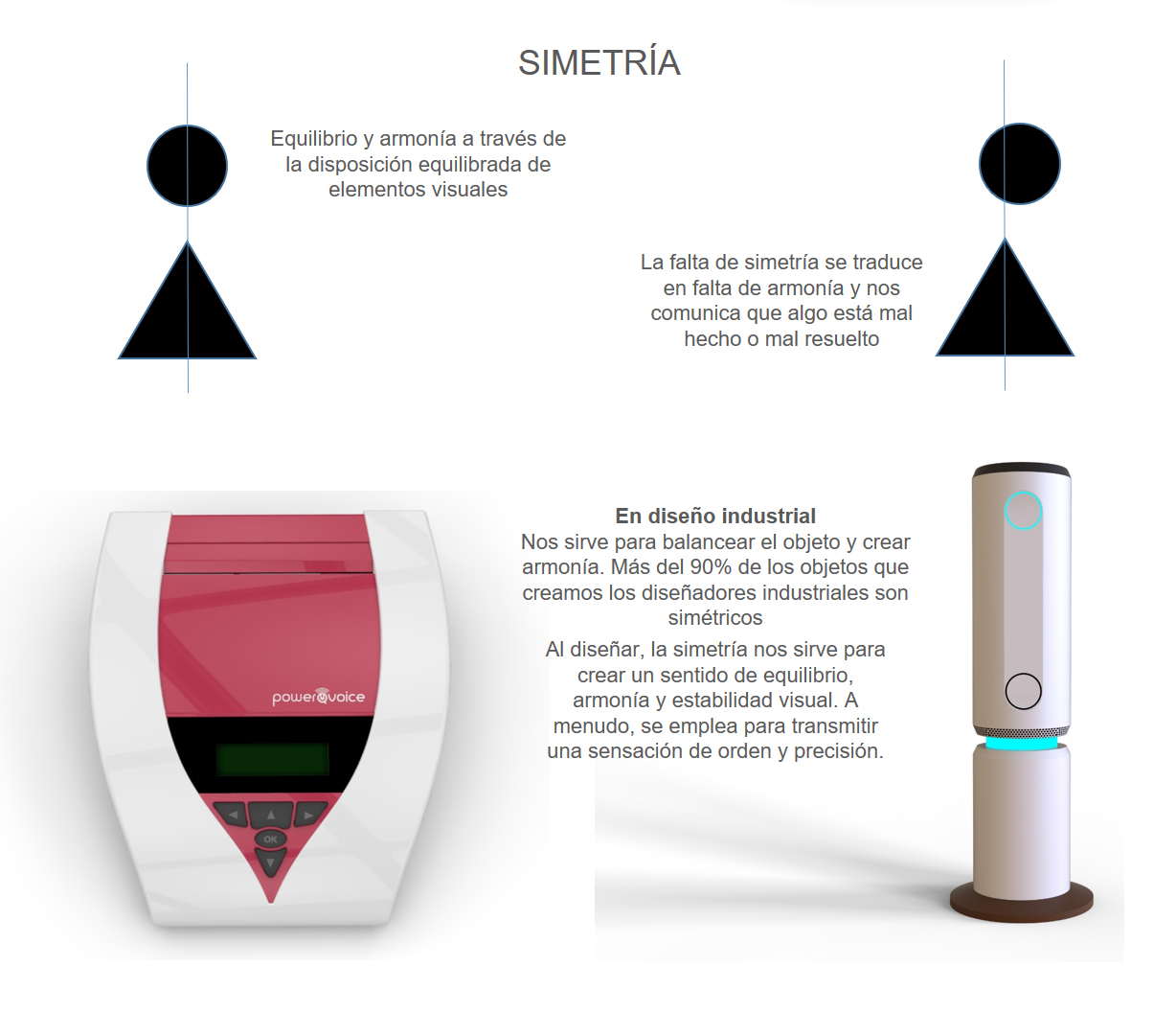 La simetría en el diseño industrial se refiere a la disposición equilibrada y armoniosa de los elementos visuales en un producto o diseño. Implica la correspondencia en forma, tamaño y distribución de componentes a ambos lados de un eje central o en relación con un patrón establecido.
